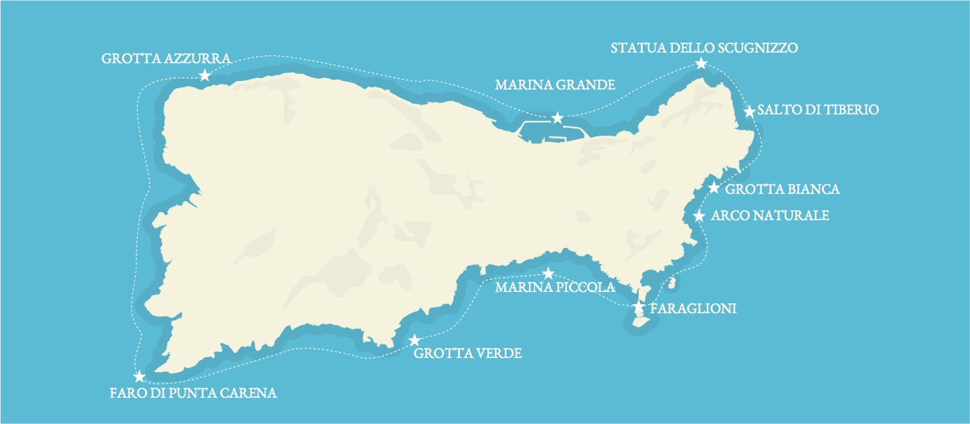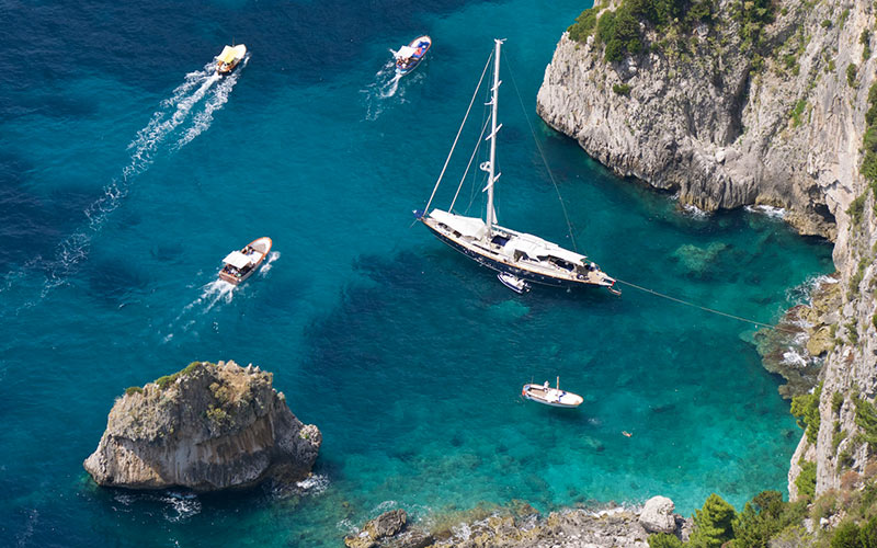 Il giro dell’isola è una delle esperienze da non perdere durante una vacanza a Capri. Solo via mare, infatti, si può ammirare tutta la bellezza di Capri con le sue grotte, le insenature e le calette segrete.